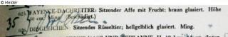 Suchmeldung Fayence-Dachreiter: Sitzender Affe mit Frucht (beschädigt) Hersteller/Künstler:in Unbekannt Objektart Kunsthandwerk / -gewerbe Material / TechnikKeramik (Ton) ; Glasur (Fayence) braunLost Art-ID582812