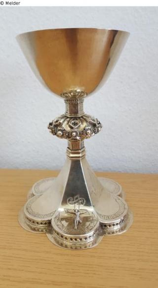 Suchmeldung Abendmahlskelch Hersteller/Künstler:in Unbekannt Objektart Gefäß Material / TechnikMetall (Silber) / getrieben ; vergoldetLost Art-ID589491