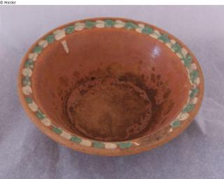 Fundmeldung Tiefe Schüssel Hersteller/Künstler:in Unbekannt Objektart Gefäß Material / TechnikKeramik (Irdenware) ; Glasur / bemaltLost Art-ID595632