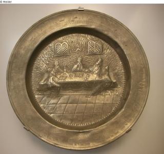 Fundmeldung Seder-Teller Hersteller/Künstler:in Johann Georg Günzler II., Rothenburg o.d.T.(Zinngießer Marke) Objektart Gefäß Material / TechnikMetall (Zinn) / getrieben ; graviertLost Art-ID596478