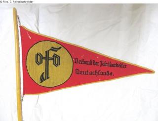 Fundmeldung Wimpel "Fabrikarbeiterverband Osterode" Hersteller/Künstler:in Unbekannt Objektart Kunsthandwerk / -gewerbe Material / TechnikTextil ; HolzLost Art-ID599814