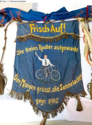 Fundmeldung Fahne "Arbeiter-Radfahrerverein Osterode" Hersteller/Künstler:in Unbekannt Objektart Kunsthandwerk / -gewerbe Material / TechnikTextil (Seidenrips)Lost Art-ID599815