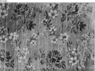 Fundmeldung Wachstuchtapete mit Blüten in Weiß, Gelb, Rot auf Grün Hersteller/Künstler:in Unbekannt (Frankreich) Objektart Kunsthandwerk / -gewerbe Material / TechnikTextil (Leinen) ; Öl / grundiert ; bemaltLost Art-ID620731