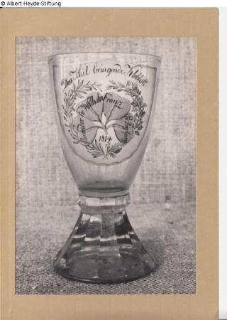 Suchmeldung Kelchglas mit vaterländischer Widmung Hersteller/Künstler:in Unbekannt Objektart Gefäß Material / TechnikGlas / geblasen ; geformt ; geschliffen ; geschnitten...Lost Art-ID632853