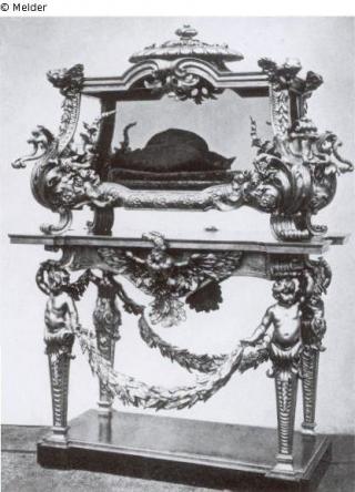 Suchmeldung Tischvitrine Hersteller/Künstler:in Schlüter, Andreas (?) Objektart Möbel Material / TechnikHolz / geschnitzt ; vergoldetLost Art-ID405843