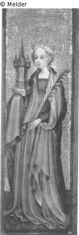 Suchmeldung Die Heilige Barbara Hersteller/Künstler:in Unbekannt (Deutsch / Köln) Objektart Gemälde Material / TechnikÖl ; Holz / gemaltLost Art-ID16913