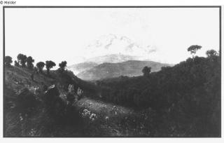 Suchmeldung Der Mawensi, Ostgipfel des Kilimandscharo, vom oberen Urwald aus in 3000 m Höhe gesehen Hersteller/Künstler:in Lutteroth, Ascan Objektart Malerei Material / TechnikÖl ; Leinwand / gemaltLost Art-ID9434