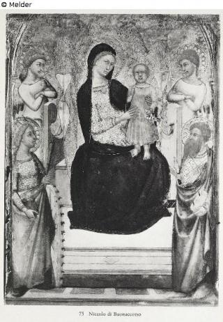 restituiert Suchmeldung Thronende Madonna mit zwei Heiligen und Engeln Hersteller/Künstler:in Niccolò di Buonaccorso Objektart Malerei Material / TechnikTempera ; Holz / gemaltLost Art-ID570641