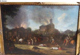 Fundmeldung Brennendes Dorf Hersteller/Künstler:in Unbekannt (nach einem Kupferstich von Jacques Callot?) Objektart Gemälde Material / TechnikÖl ; Leinwand / gemaltLost Art-ID516994
