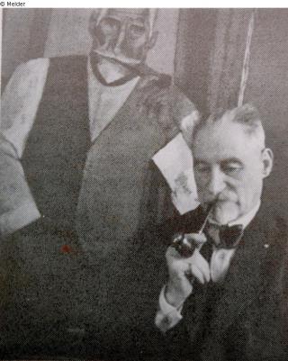 Suchmeldung Onkel Max mit seinem Portrait im Hintergrund Hersteller/Künstler:in Maillet, Leo Objektart Gemälde Material / TechnikÖl / gemaltLost Art-ID598362