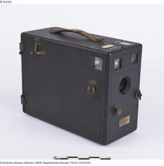 restituiert Fundmeldung Magazinkamera Monopol Hersteller/Künstler:in Brack & Co GmbH München Objektart Optische Instrumente Material / TechnikMetall ; Kunststoff ; Glas ; Holz ; LederLost Art-ID616283