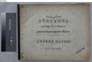Fundmeldung Collection de Quatuors pour deux Violons, Alto et Violoncelle arrangés pour le Piano à quatre Main Autor:in Haydn, Joseph; Gleichauf, Franz Xaver (Bearb.) Verlag Hofmeister Objektart Notenblätter Lost Art-ID613537