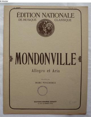Fundmeldung Allegro et Aria Autor:in Mondonville, Jean-Joseph Cassanéa de; Pincherle, Marc Verlag Senart Objektart Notenblätter Lost Art-ID613579