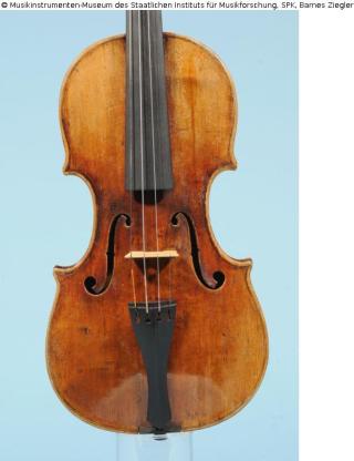 Fundmeldung Violine Hersteller/Künstler:in Goffriller, Matteo (Zetteltranskription: Mattio Gofrilleri in Venetia Al'Insegna di Cremona 1698) Objektart Musikinstrument Material / TechnikHolz (Ahorn) ; Holz (Fichte) ; Holz (Ebenholz)Lost Art-ID632156