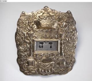 Fundmeldung Tora-Schild Hersteller/Künstler:in Wolf, Marcus Objektart Ritualgegenstände und Zubehör Material / TechnikMetall (Silber) / teilvergoldet ; getrieben ; punziertLost Art-ID634116