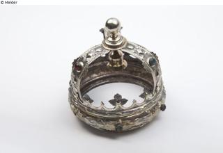 Fundmeldung Tora-Krone Hersteller/Künstler:in Brenner, Georg Andreas Objektart Ritualgegenstände und Zubehör Material / TechnikMetall (Silber) ; Glas / teilvergoldet ; getrieben...Lost Art-ID634118