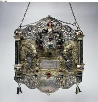 Fundmeldung Tora-Schild Hersteller/Künstler:in Unbekannt Objektart Ritualgegenstände und Zubehör Material / TechnikMetall (Silber) ; Glas / teilvergoldet ; getrieben...Lost Art-ID634120