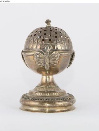 Fundmeldung Etrog-Behälter Hersteller/Künstler:in Unbekannt Objektart Ritualgegenstände und Zubehör Material / TechnikMetall (Silber) / gegossen ; durchbrochenLost Art-ID634123