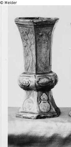 2 sechseckige Steingutvasen