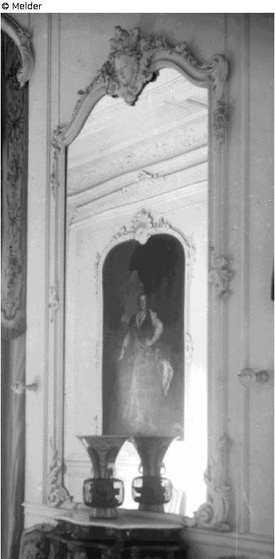1874 im Zuge der Umbauarbeiten der Französischen Galerie im Georgenbau geschaffen. Die beiden Spiegel befanden sich über Jahrzehnte im Raum 531 (Vorraum zur Französischen Galerie) des Residenzschlosses Dresden; Gemäß des Auseinandersetzungsvertrages von 1924 fielen sie dem Freistaat Sachsen zu; Im Jahr 1944 wurden Spiegel und Spiegelteile und Wandspiegel aus dem Residenzschloss an einen Bergungsort (Schloss Rammenau oder Schleinitz) verbracht; Ein Rücktransport ist nicht belegt. Zu den Verlustumständen ist nichts bekannt. Ein Verlust im Zusammenhang mit den Ereignissen des 2. WK wird vermutet.