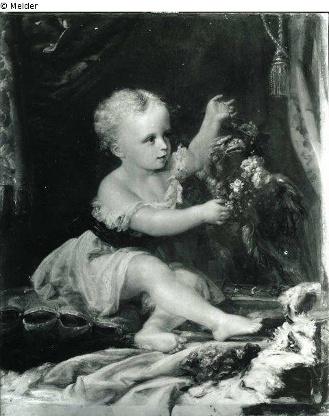 Gemalt im Auftrag von Friedrich Wilhelms IV.. der Taufpate des Prinzen war. 1844 erworben (Journal III 8) und in der Wohnung Friedrich Wilhelms IV. im Schloss Charlottenburg platziert. 1883 dort inventarisiert. Eine Wiederholung in Kensington Palace. London. Vorstudien nach dem Leben. die Hensel im August 1843 in Buckingham Palace bzw. Windsor Castle zeichnete. im Kupferstich. Berlin.