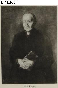In dunklem Kleid, in den verschränkten Händen ein Gebetbuch haltend. Das Bild trägt den typischen Charakter der Diezschule. Bez. l. u.: E. Keyser, Goldrahmen.