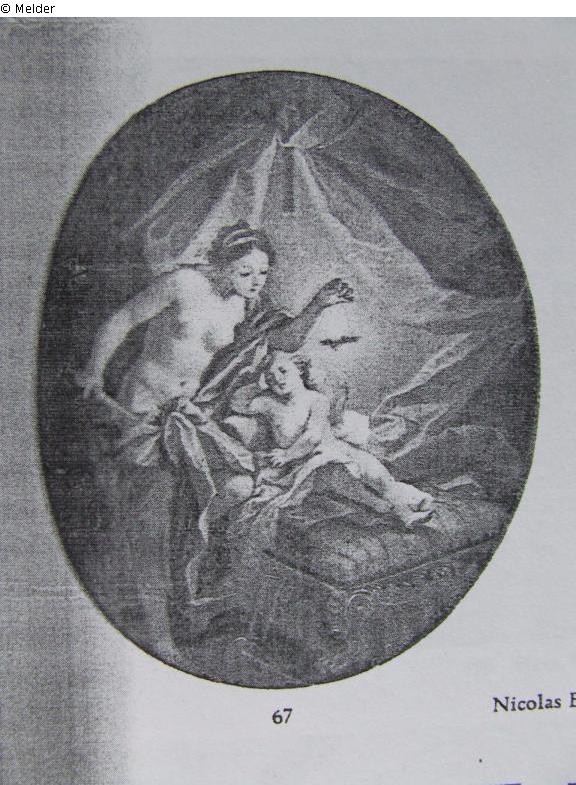 (Helbing: Auf goldgeschnitztem Ruhebett mit schwerer grüner Draperie, oval, G.R.) Venus mit Öllampe und Messer. Gegenstück zu: Venus (Lot 689