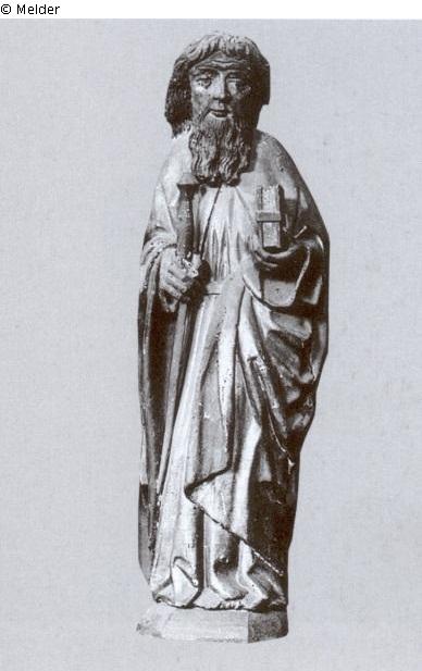 bärtiger Apostel mit gesenktem Schwert in der Rechten, aus dem Hochaltarentabel der Marienkirche