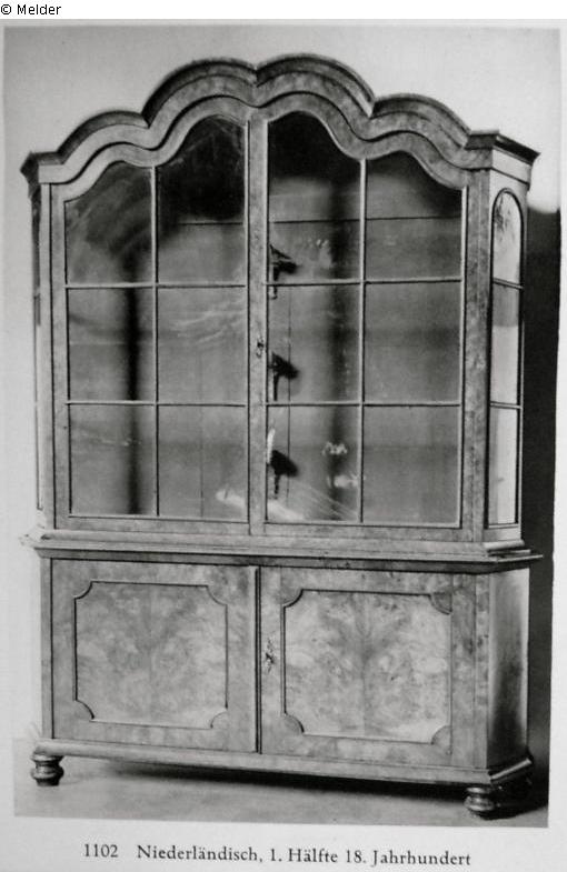 Suchmeldung | Einzelobjekt Aufsatzschrank Lost Art-ID449074 Vorherige Weiter Hersteller/Künstler:in Unbekannt (Niederländisch) TitelAufsatzschrank Datierung1701/1750ObjektartMöbelObjektgruppeKunsthandwerk / -gewerbeMaterial / TechnikHolz (Nussbaum) ; Glas / furniert Höhe 228,00 cm Breite 170,00 cm Tiefe 40,00 cm Beschreibung An den Seiten abgekantet, unten und oben zwei Türen, der Aufbau mit Glas (nachträglich) und geschwungenem Sims. Weiterlesen Weniger anzeigen Provenienz Auktion Ottmar Strauss bei Helbing Frankfurt (Main), Nr. 45, 22.-24. Mai 1935, Lot 1102, Abbildung Tafel 81 Weiterlesen Weniger anzeigen Veröffentlicht seit15.11.2011 Ansprechpartner:in von Trott zu Solz LammekPositionRechtsanwälte • NotarTel+49 (0) 30 59 00 33 0-0E-Mailkanzlei@vontrott-lammek.de