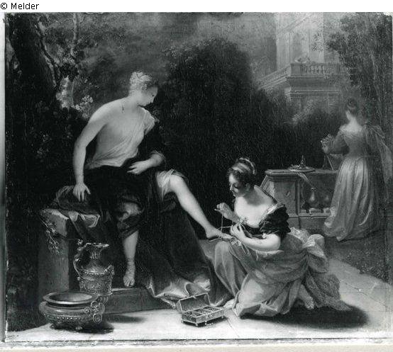 1794 im Potsdamer Stadtschloss; 1806 bis 1829 in der Bildergalerie von Sanssouci; Neues Palais (P-NP)- Juli 1942 Schloss Rheinsberg; 2010 Rückgabe von Privat (Kunsthandel) an SPSG.