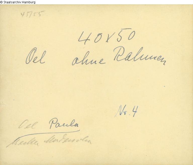Verschwunden nach der Flucht der Familie aus Hamburg 1936, nicht in der Auktion des Wohnungsinhalts erwähnt.