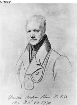 Bezeichnet unten: Martin Archer Shee. P. L. A. Born Due 23 1770. Schwarze Kreide.
