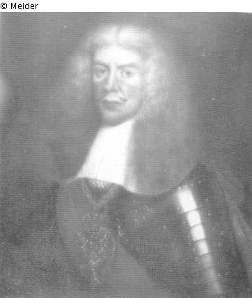 Brustbild im Harnisch, mit großem, weißem Kragen und roter Feldbinde. An einer Halskette trägt der Fürst ein großes, diamantvesetztes Kleinod mit dem kursächsischen Wappen. Die Gesichtsfarbe ist rötlich, der Oberlippenbart nur angedeutet und das lange, weißblonde, gekrauste Haar in der Mitte gescheitelt.
