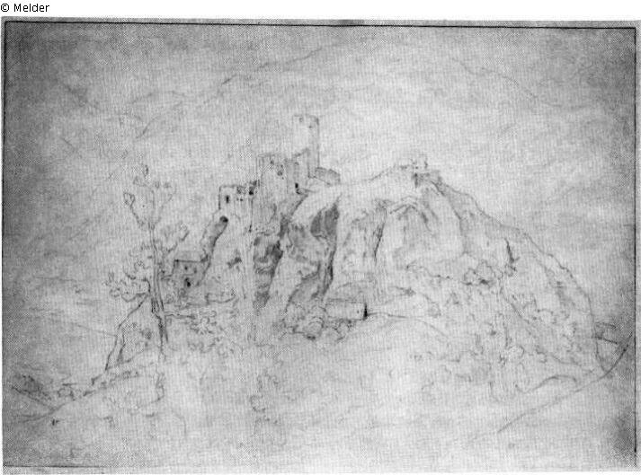 Burgruine Schreckenstein, im Tal die Elbe