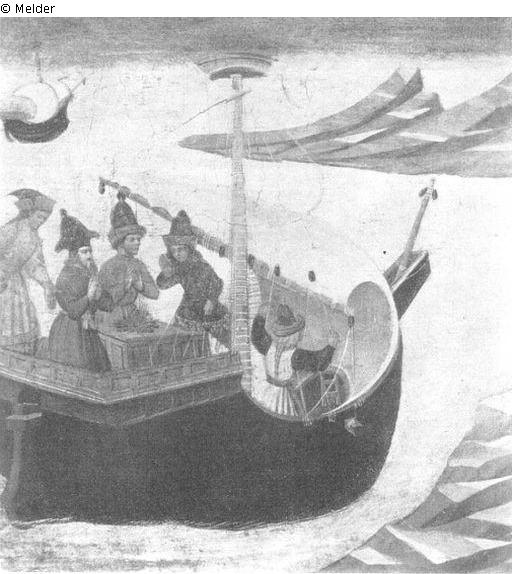 Cassonebild mit Aeneas auf der Fahrt nach Sizilien