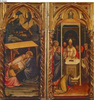 Coll. E. Solly, Berlin, at the latest 1821; Königliche Museen, Berlin, 1821-1923 (no. 1102; on loan at the Universitätsmuseum Göttingen, 1884-1924, as Spinello Aretino); Stephen Bourgeois, New York, 1924; art dealer Richard Ederheimer, sold to Jacques Goudstikker, Amsterdam, before December 1930; looted by the Nazis, Amsterdam, July, 1940; Hermann Göring; Alois Miedl, Amsterdam; sold to art dealer Wilhelm Henrich, Frankfurt a. M.; coll. Uwe Opper, Kronberg (Taunus) until 1978; sale Sotheby's London, April 16, 1980, no. 11 (two panels), sold for BP 44000,--; Verbleib unbekannt / whereabouts unknown