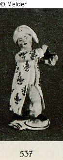 Hahn: Knabe in geblümtem Schlafrock mit Zipfelmütze, hält Palette und Pinsel in den Händen. Rocaillesockel. Blaumarke: C T und Krone.