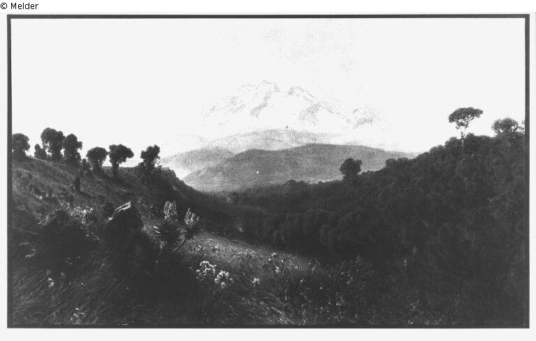 Der Mawensi, Ostgipfel des Kilimandscharo, vom oberen Urwald aus in 3000 m Höhe gesehen