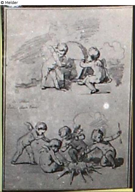 Dessin deux groupes Amours / Zeichnung zwei Gruppen Putti