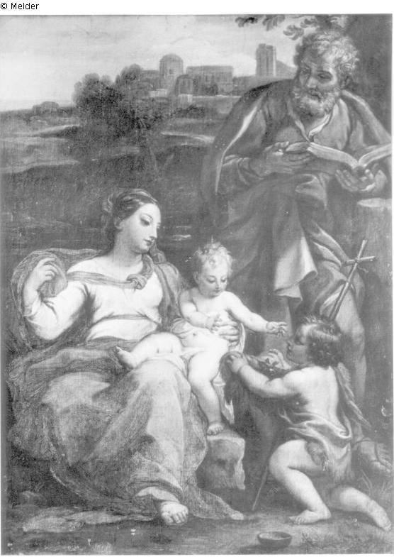 Suchmeldung | Einzelobjekt Die heilige Familie mit Johannes dem Täufer als Knaben Lost Art-ID140742 Vorherige Weiter Hersteller/Künstler:in Maratti, Carlo Geburt 1625.05.15, Camerano Tod 1713.12.15, Rom WirkungsortRom TitelDie heilige Familie mit Johannes dem Täufer als KnabenObjektartMalereiObjektgruppeMalereiMaterial / TechnikÖl ; Leinwand / gemalt Höhe 60,00 cm Breite 45,00 cm Inventarnummer510Provenienz Verlustort Bad Wildungen, Kurverwaltung (Luftschutzkeller) Weiterlesen Weniger anzeigen AuslagerungsortBad Wildungen, Kurverwaltung (Luftschutzkeller) Veröffentlicht seit2001 Kontakt Hessen Kassel Heritage / Gemäldegalerie Alte Meister Schloss Wilhelmshöhe Schlosspark 1 34313 Kassel Deutschland Postfach 410420 34066 Kassel Deutschland Tel(0561) 31680-153Fax(0561) 31680-111E-Mailinfo@heritage-kassel.deHomepagehttps://www.heritage-kassel.de Ansprechpartner:in Dr. Justus LangePositionProvenienz-, Rückgabe- und RestitutionsanfragenTel+49 (0) 561-31680-112E-Mailjustus.lange@heritage-kassel.de