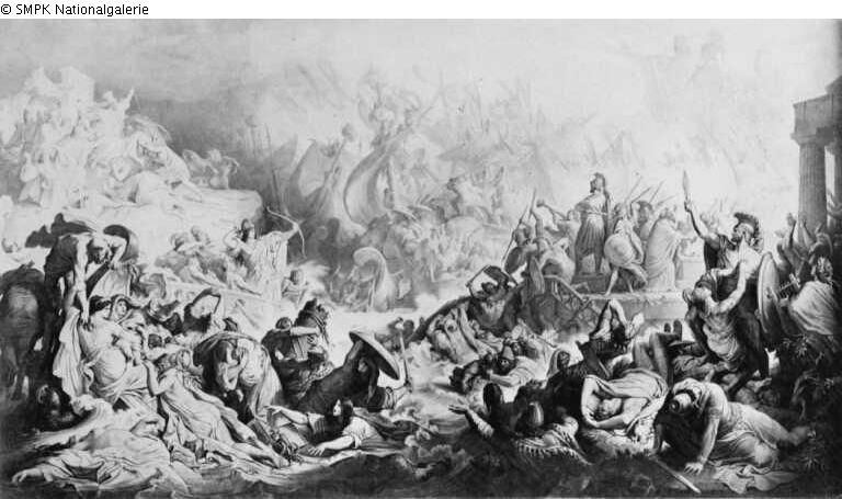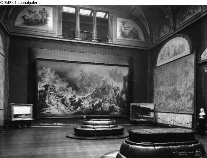 1890 von Kaiser Wilhelm II. an die Nationalgalerie überwiesen, hier beim Luftangriff am 15. Mai 1944 im Treppenhaus vernichtet.