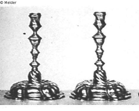 Gedrehter Balusterschaft auf profiliertem Glockenfuß. Augsburg. Augsburger Beschau- und Meistermarke J.J.B. = Joh. Jac. Biller. Gew. 650 g.