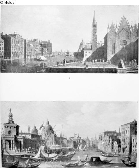 zu b) reiche Figurenstaffagen; Literatur: Abbildung Versteigerungskatalog Tafel 14, im Canaletto-Werkverzeichnis von 1976, Constable, unter Nr. 197 b., dort bezeichnet als Schule