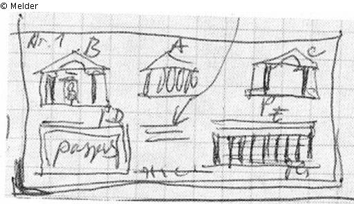 Entwürfe zum Lutherdenkmal - Fünf Skizzen (bez. A bis E) zum Entwurf eines griechischen Tempels