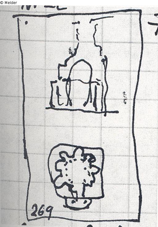 Tusche / aquarelliert ; gezeichnet (Feder)