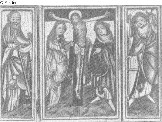 Flügelaltärchen mit Christus am Kreuz zwischen Maria und Johannes