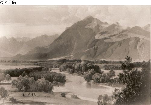 Flusslandschaft mit Bergen