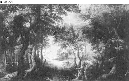 Tafelmalerei: Bild: Laubwald & Fluß & Dorf; Wald; Laubwald & Fluß & Dorf