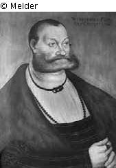 Porträt aus einer Serie von Brustbildern, auf blauem Grund gemalt und zum Teil übermalt. Signiert links über der Schulter: „IS“ (ligiert). Bezeichnet rechts oben: „Wolfgang: PRIN|CEPS ANHALTINO“.