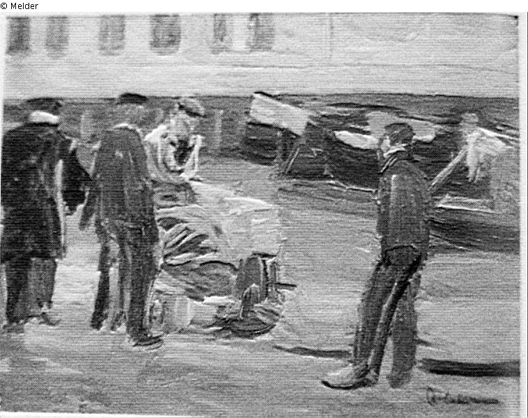 Studie zum "Gemüsemarkt in Delft"; rechts unten Nachlass-Stempel